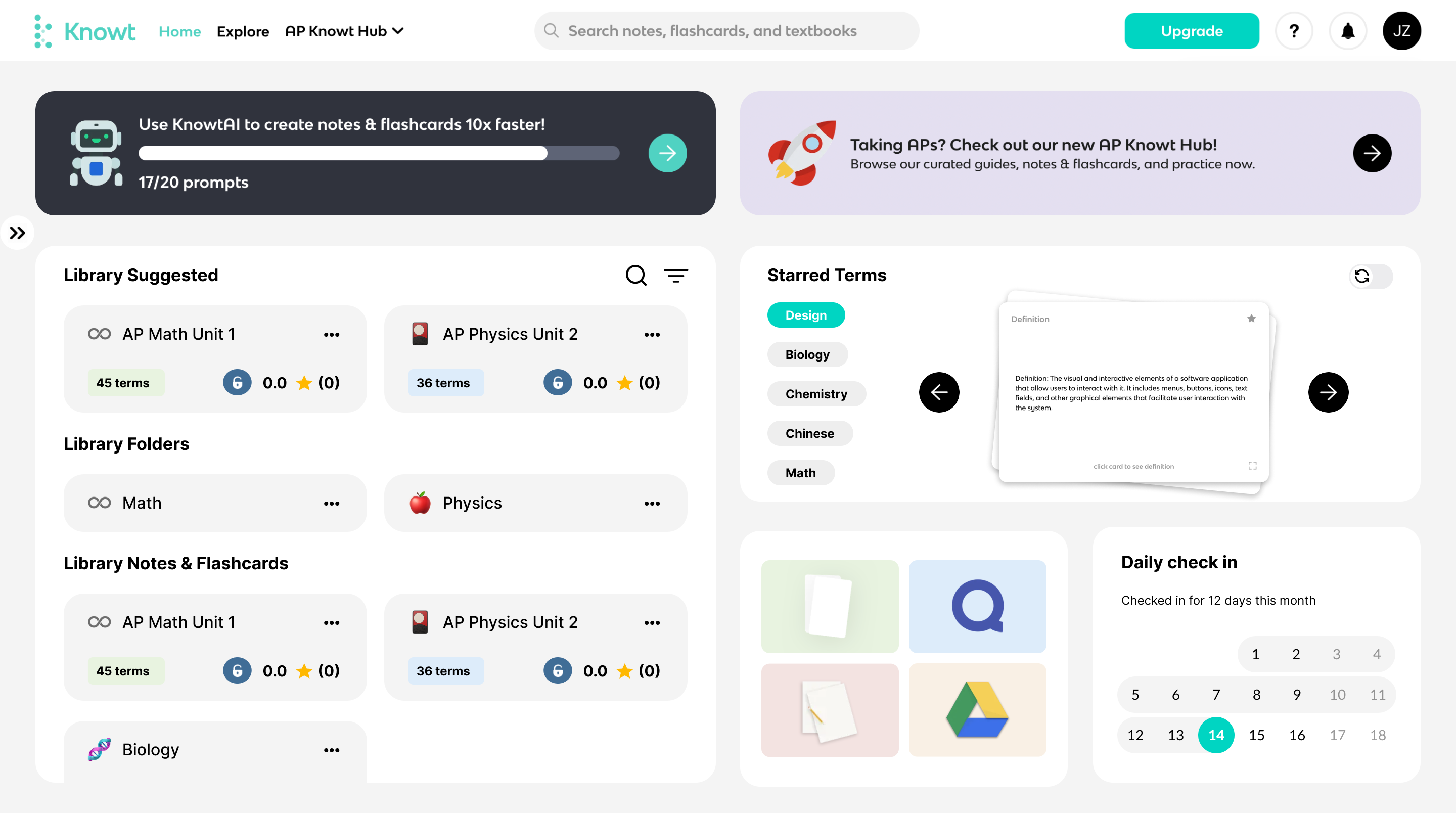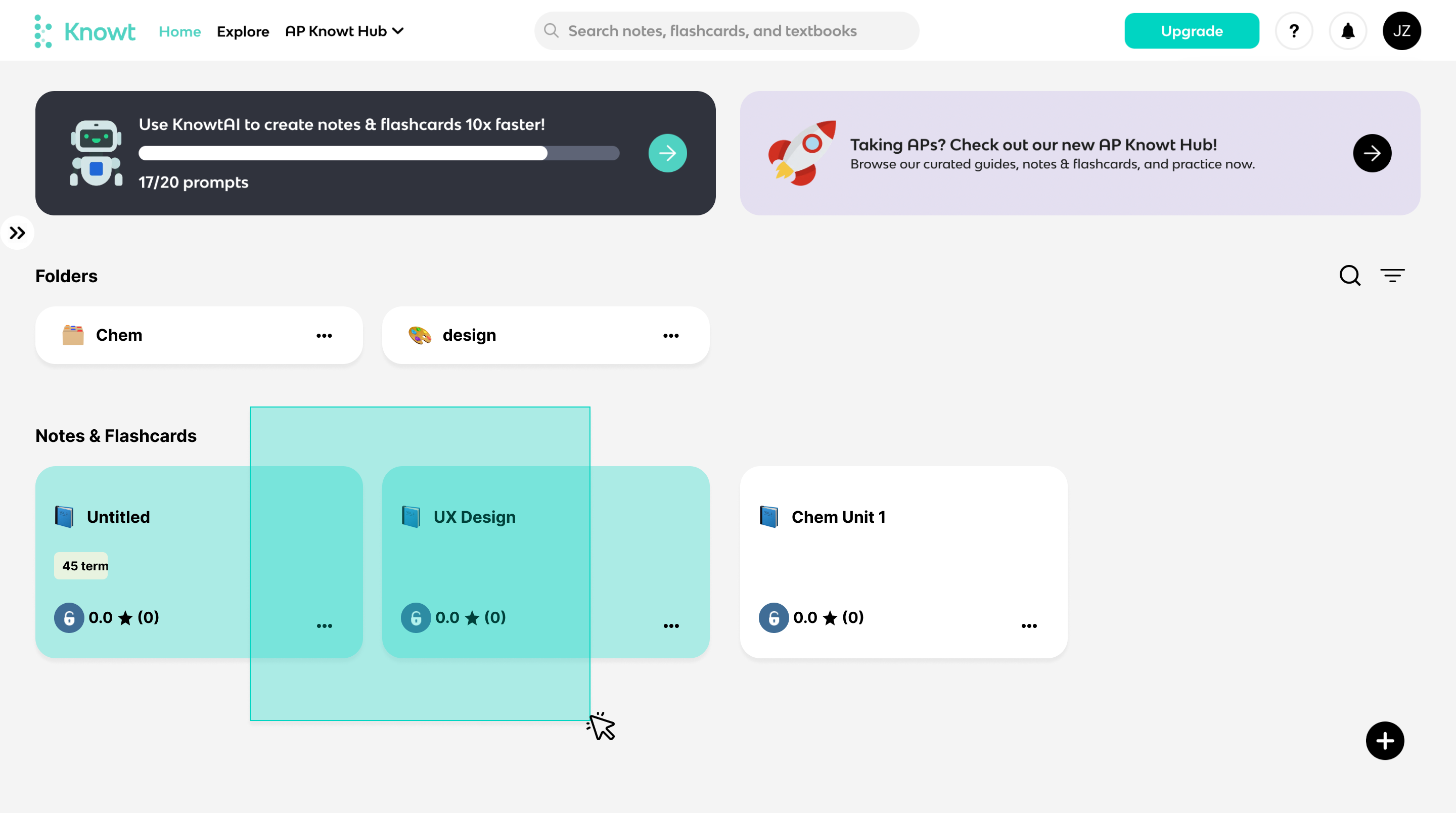 - Some content overlaps between the "Explore" section and the "AP Knowt Hub" section, causing confusion.