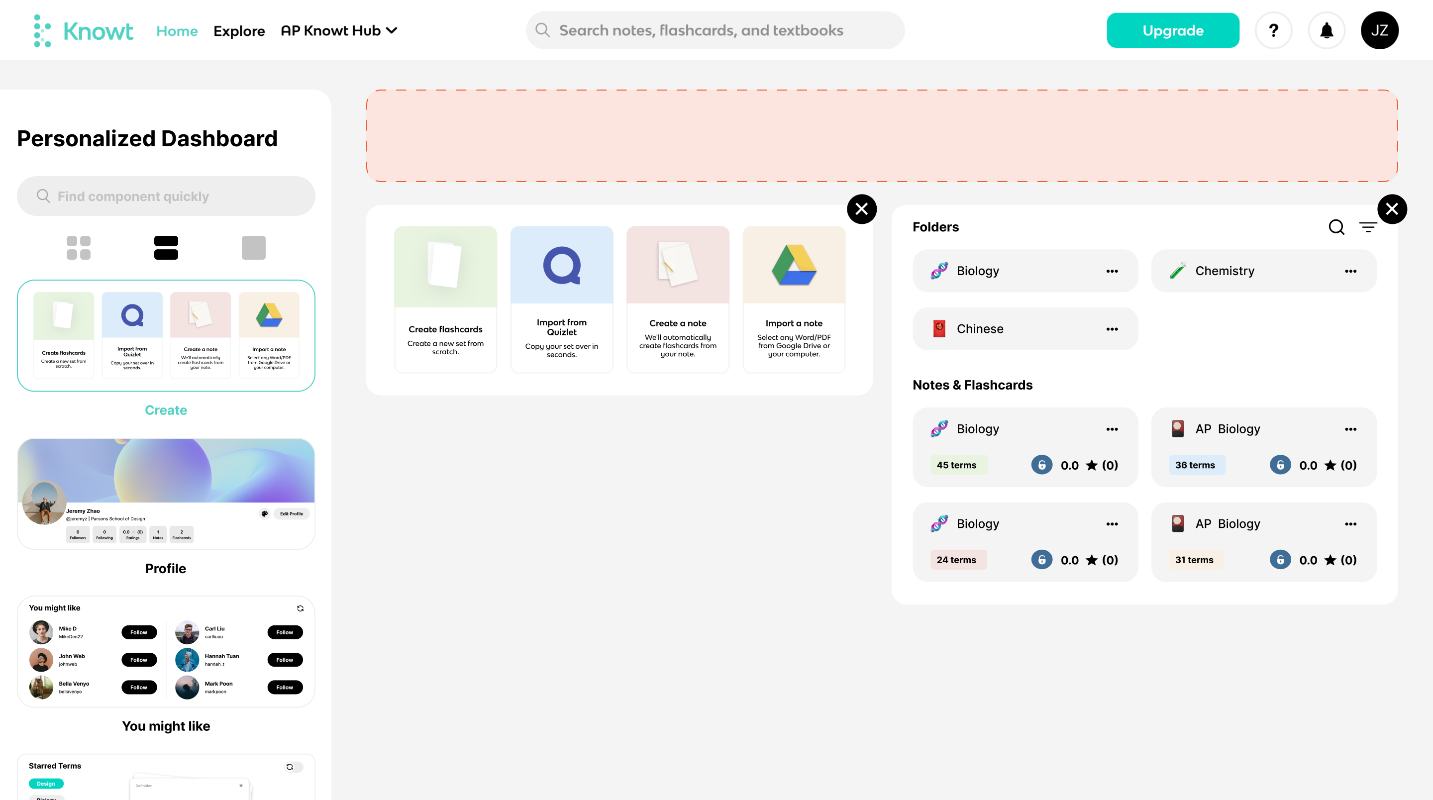 Different students have varying study habits, making it a significant challenge to meet the demands of all users. One potential solution is to implement a customized homepage feature. This allows students who prefer creating their own notes and flashcards to personalize their homepage, focusing on their specific needs. Similarly, students who prefer exploring and accessing existing study materials can customize their homepage to prioritize exploration. Considering that some users may fall into both categories, enabling everyone to customize their homepage according to their preferences would be beneficial. This customization would involve deciding which features are displayed on the homepage, empowering users to tailor their experience to align with their study habits and preferences.